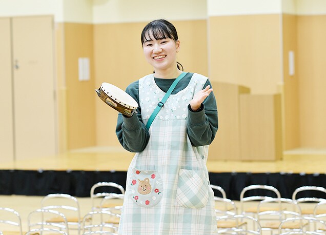 また、模擬保育の授業では子どもたちが目の前にいることを想定して話をしたり、手遊びやパネルシアターなどを演じたりしました。その経験が自分自身の自信となり、子どもたちと簡単に楽しめる活動をする際に役立ちました。