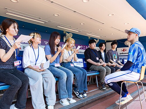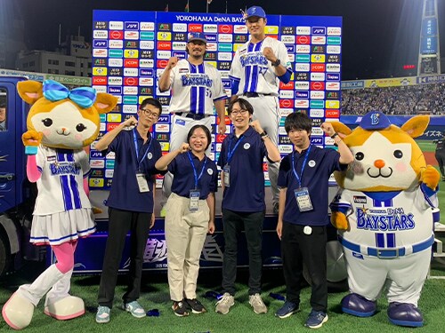 「帝京平成大学デー」において横浜スタジアム内に設置された特別ブースにて、来場したお客さまへのサービス提供。