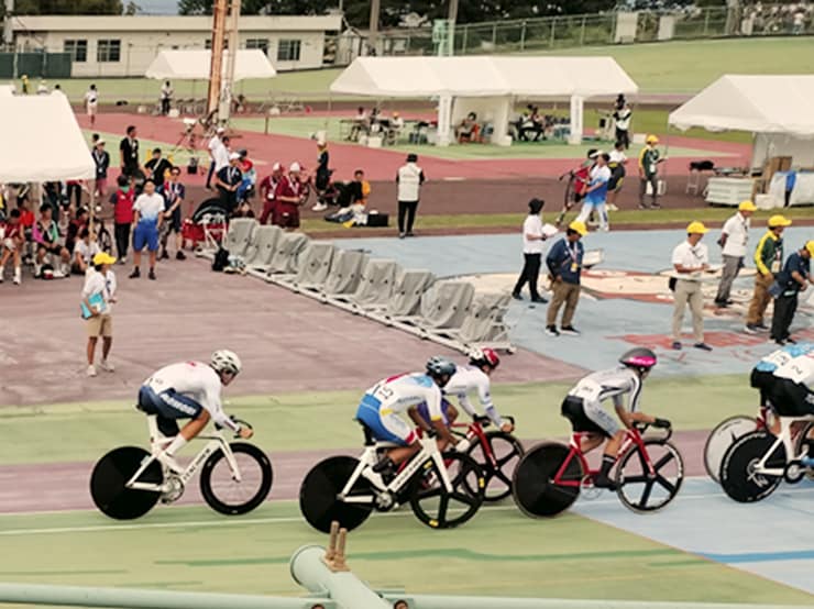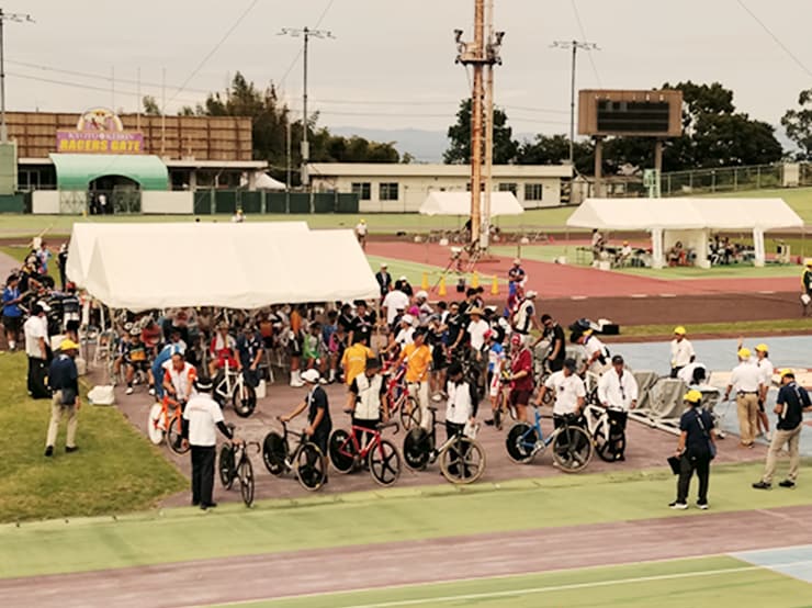 今回は、国スポにおいて日本スポーツ協会公認アスレティックトレーナー(以下AT)が帯同義務となるにあたり、本部役員として現場の状況を理解するとともに、選手団帯同ドクターや競技役員とのコミュニケーションを密にする目的で自転車競技(京都市日向町競輪場)を視察しました。高橋教授は「大学でのAT育成にとどまらず、ATの活動現場拡大にも取り組んでいきたい」と話していました。