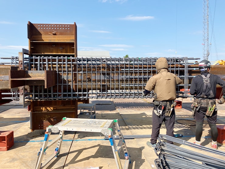 鉄骨工事とは、新校舎(新しい身体)を作るうえで、骨格を作る非常に大事な作業です。柱となる鉄骨を取り付け、順次、梁(柱と柱を水平方向に繋ぐ鉄骨)などの部材を組み立てる作業が進められていくことで、建物の形状が段階的に明確になっていきます。
