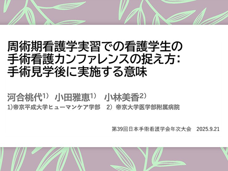 テーマは「周術期看護学実習での看護学生の手術看護カンファレンスの捉え方-手術見学後に実施する意味」です。