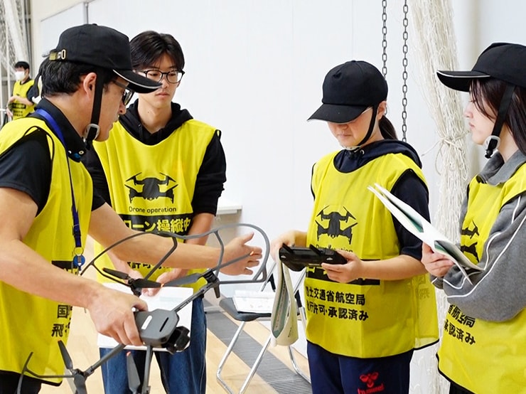 初日は安全確認や離着陸・ホバリングなどの基礎的な操縦実習を体験。受講生は真剣な表情でドローンの操作や安全確認を学びました。