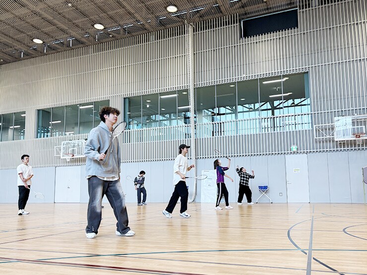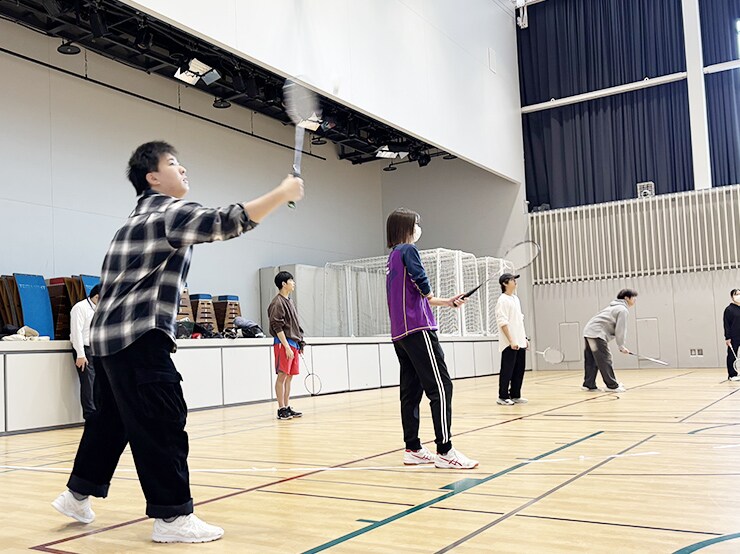 バドミントン部の学生に指導してもらい、練習後にダブルスの試合を行いました。試合中にもどんどんと上達していき、最後にバドミントン部の学生とラリーを行った際には、部員が驚くほどやり取りが続くようになっていました。