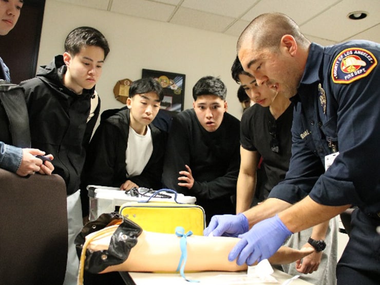 米国カリフォルニア州ロサンゼルス市を中心に、1月25日から1月31日までの5泊7日の日程で、救急医療全般について研修を実施し、救急救命士コースの学生25名(池袋キャンパスから24名、千葉キャンパスから1名)が参加しました。