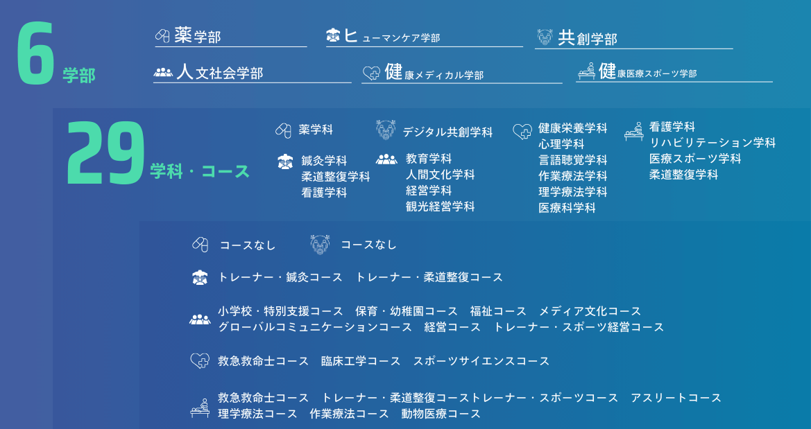 医療スポーツ学科救急救命士コース / トレーナー・スポーツコース / アスリートコース / 動物医療コース
